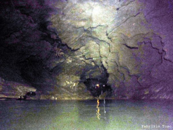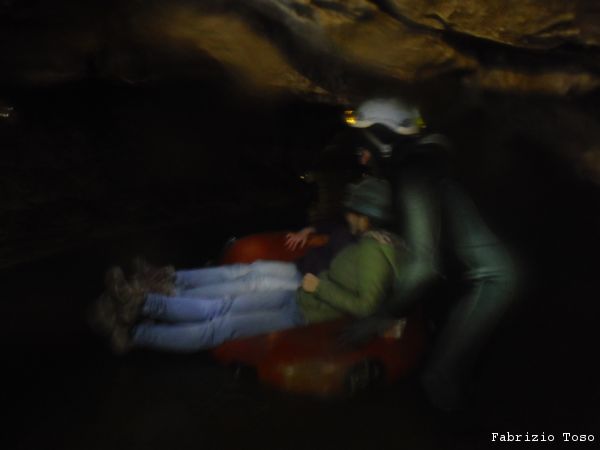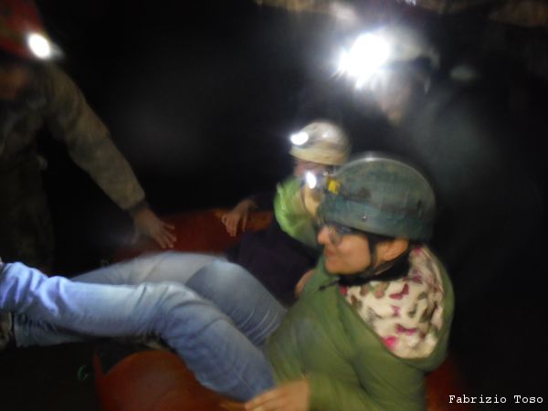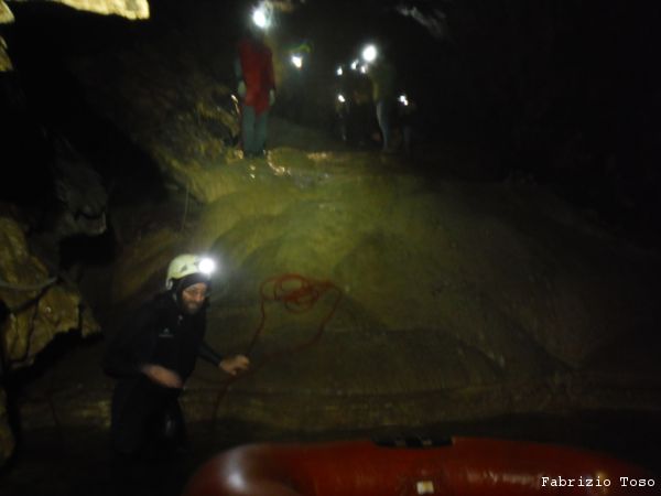 Come Nerone spiega loro, il canotto sara’ la cosa piu’ bagnata con cui entreranno in contatto oggi. Si dovranno rassegnare ad avere le terga bagnate zuppe per tutta la permanenza in grotta. A 2 per volta l’intero gruppo viene traghettato dalla parte opposta.