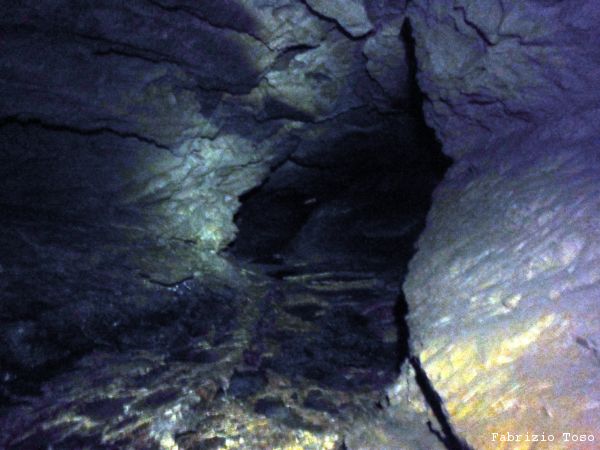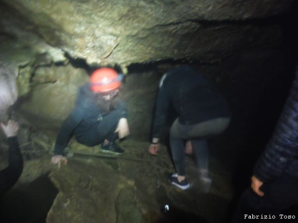 Troviamo una spaccatura. Con Michela la osserviamo. Se e’ questa, le dimensioni che ha dato Domenico erano sovrastimate di molto. Questa sembra circa 8 metri per 2, ad essere generosi.