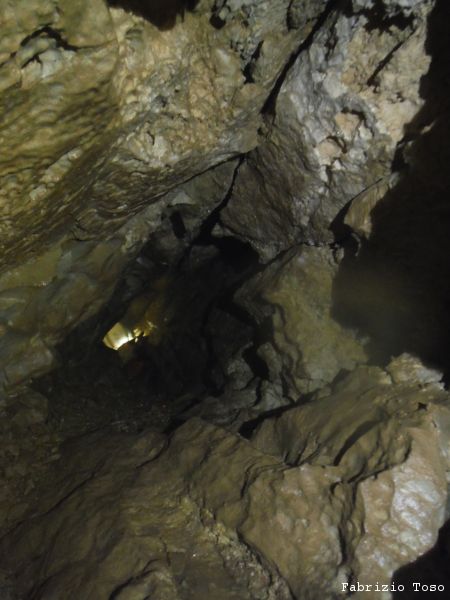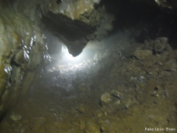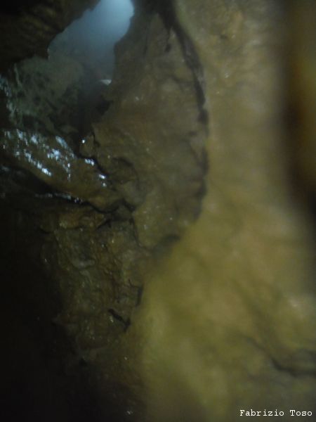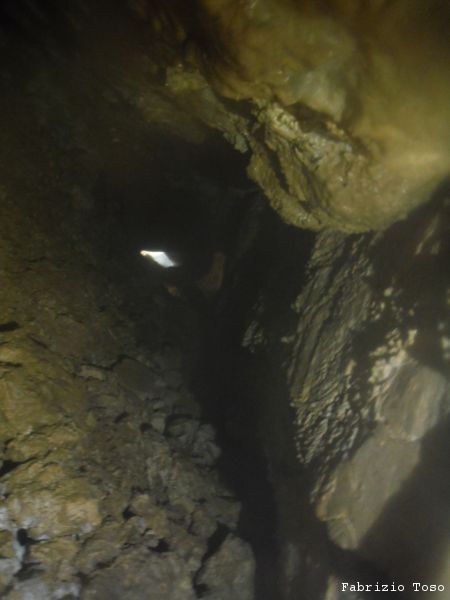Facciamo 2 squadre, Paolo, Mirko ed io andremo avanti a vedere cosa fare per andare avanti. Tornando indietro faremo il rilievo. Tarcisio, Nerone e Fabrizio si fermeranno a meta’ per allargare alcuni punti ancora ostici. Andrea e Francisco decideranno sul momento come muoversi. Scendendo tento qualche foto frettolosa ma senza risultati apprezzabili.