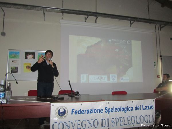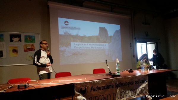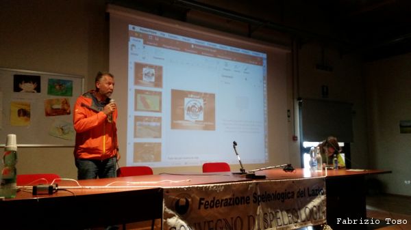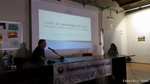 Gianni presenta una relazione sui corsi di speleologia del Lazio, dalle origini ad oggi.
