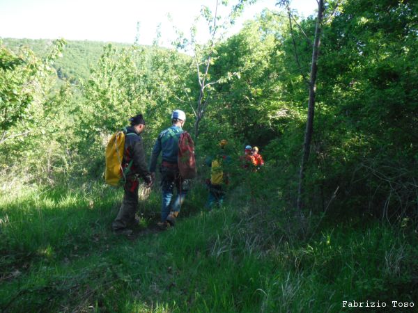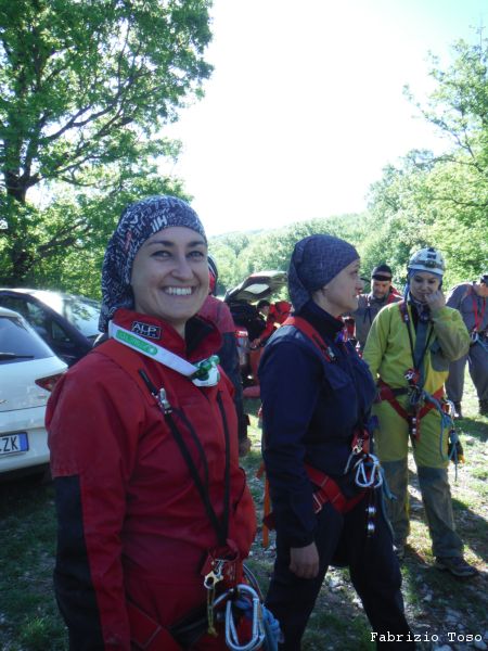 Ci sono 2 corde cosi’ possiamo scendere ogni istruttore col proprio allievo, si puo’ farlo anche perche’ oggi siamo quasi in rapporto uno ad uno.