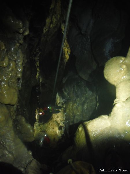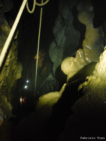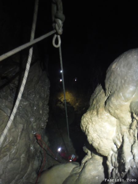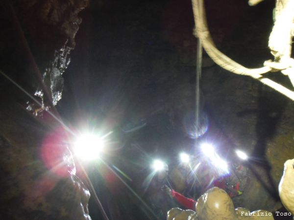 Sotto inizia ad esserci affollamento, c’e’ una sala che prelude al primo vero pozzo, quello della Cascata Bianca.