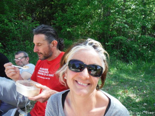 Aiuto anche io Stefania e Barbara a risalire e poi scendo a raggiungere gli altri. Li trovo che banchettano e mi unisco con gioia a loro.