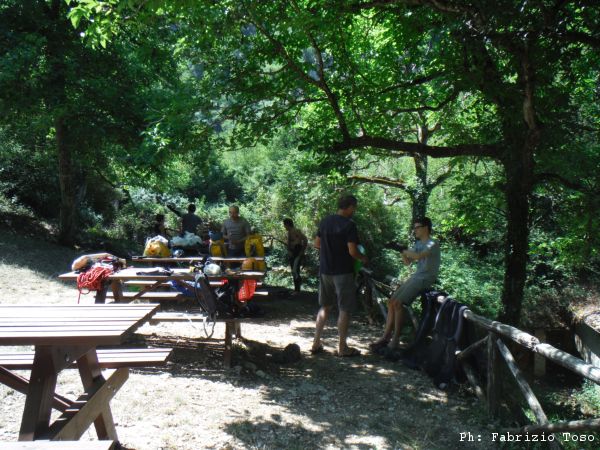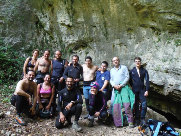 Una veloce salita ci porta fuori a rivedere il sole, gustare il caldo e ritrovare i nostri amici che sono rimasti all’ingresso ad attenderci pazientemente. Purtroppo non posso fare altre foto perche’ la batteria della fotocamera si dichiara oltremodo stanca e si rifiuta di collaborare ulteriormente. Gli ultimi momenti di questa bella giornata rimarranno solo un bel ricordo per me e per chi c’era. Per alleviare il vostro dispiacere, posso dirvi che abbiamo chiuso la giornata con i tuffi nell’Aniene, un lauto spuntino ed allegre chiacchiere. Purtroppo quando per i nostri amici gemellati si avvicina l’ora del rientro a casa dobbiamo raccogliere le nostre cose, salutare tutti e scappare via. Senza affanno, ma con premura, torniamo verso Subiaco dove ci salutiamo ed ognuno prende la propria strada. Rosa, Giuseppe e Gabriele volano verso Roma per far prendere il treno a Rosa. Io recupero la macchina e li seguo. Costanza, Fedele e Vincenzo si attardano a Subiaco il tempo di un gelato prima di iniziare il lungo viaggio in macchina che li riportera’ in Puglia. Potrei dilungarmi sul caos di traffico che ho trovato al rientro ma vi risparmio questa nota stonata di una giornata altrimenti molto bella. Evviva il gemellaggio, evviva il GSR! Alla prossima.