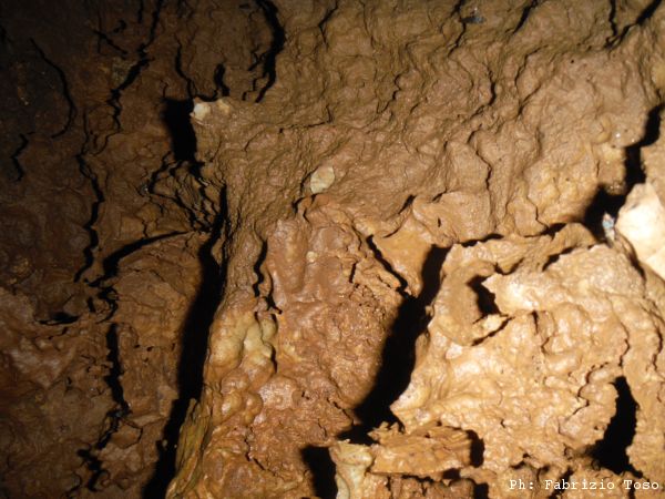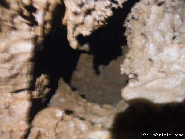 Indosso la tuta e vado subito a vedere come e’ diventata la grotta dopo il lavoro in comune con i nostri gemellati del GSR. L’avevo lasciata che era un buchetto di circa 3 metri con un sasso incastrato a meta’ e tanta terra alla base. Avevamo visto una piccola diramazione laterale al livello della base di terra. Ora il saltino da 3 metri e’ del tutto sgombro. Scendo per vedere cosa ne e’ stato della terra. Ora la base di terra e’ dimezzata ed ingombra di sassi sistemati come un muretto a secco per tamponare e delimitare la terra. L’altra meta’ della base e’ diventata un altro buco che scende stringendo per ancora un paio di metri. In fondo si intravede qualcosa…potrebbe essere qualcosa di buono, ma per ora decido di interessarmene. Prima di continuare gli scavi c’e’ da togliere sassi e terra da sopra altrimenti rischiamo di rimanere seppelliti. Scende Mario a darmi una mano. Sopra rimangono gli altri a tirare su le cofane ed i sassi imbragati. Nerone e’ a bordo ingresso e funge da motore principale e coordinatore del tiro. Lavoriamo con foga almeno 3 ore. Alla fine possiamo dirci soddisfatti. I sassi sono praticamente tutti fuori e la parte della terra meno compatta ha preso la stessa direzione. Esortati dai nostri amici che reclamano per la pausa pranzo, usciamo fuori a goderci il caldo. Come avevo deciso, non degno di uno sguardo la pizza fedifraga e mi accontento di bere dell’acqua. Dopo il riposo mi armo di trapano e vado giu’, stavolta col preciso intento di andare a ficcanasare nel buco scavato la volta scorsa dai nostri amici del GSR. Il buco nel primo metro e’ largo e comodo, dopo diventa largo quel che basta per infilarci le gambe e poco piu’. Non e’ ancora abbastanza largo per tentare il passaggio. Inizio a lavorare di buona lena con mazzetta, scalpello, maleppeggio e tutti gli strumenti del caso. Scendono a darmi manforte sia Gabriele che Mario e lavoriamo ad allargare e tirare fuori terra e sassi per almeno un’altra ora. Il nostro lavoro porta i suoi frutti. Ora il passaggio, seppur stretto sembra possibile. Viene chiamata una sosta, da fuori ci urlano che hanno le braccia fuse dalla fatica. I miei amici iniziano a salire per guadagnare l’uscita e fare una meritata sosta. Non li seguo subito, devo martellare quello spuntone, si, quello la’, se salta posso provare a scivolare dentro. Eccolo che mi accontenta! Sono pochi millimetri in piu’ ma e’ quel che serve. Mi calo dentro cercando di limitare gli strappi alla tuta che si impiglia dappertutto. Qualche sbuffo e sono passato. Dall’altra parte trovo l’ambiente che avevo immaginato delimitandolo con i piedi. E’ una salettadi forma vagamente ovale, alla mia sinistra un buco. Anche a destra c’e’ forse un buco, ma e’ ingombro di sassi. Per ora mi dedichero’ a quello a sinistra. Mentre svolgo le mie esplorazioni, da fuori iniziano a preoccuparsi. Le loro prime urla di richiamo non le sento proprio. Scende Gabriele a vedere cosa ne e’ stato di me. Quando si avvicina, finalmente lo sento e lo rassicuro. Prima di uscire con lui, scatto svelto alcune foto, la prima al buco che intendo allargare.