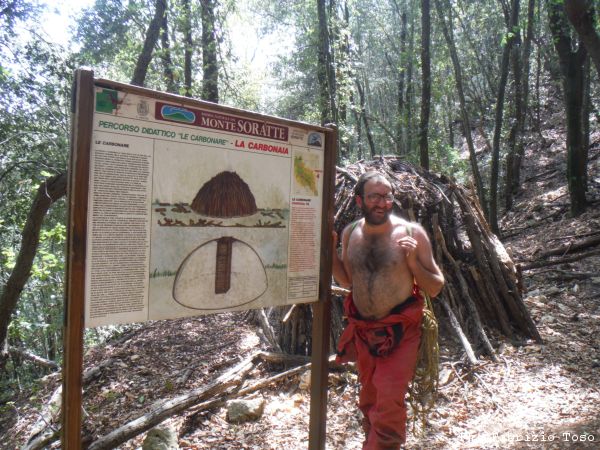 Strada facendo c’e’ anche la ricostruzione di una carbonaia. Facciamo sosta a documentarci.