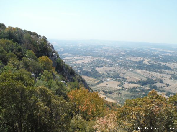 In effetti dalla grotta di San Sebastiano avremmo potuto proseguire dritti senza tornare indietro, pero’ il sentiero dopo l’ingresso della grotta lo ricordo quasi chiuso e visto che siamo poco vestiti non ci ha sorriso l’idea di scorticarci con rami e spini. Il panorama dalla panchina.