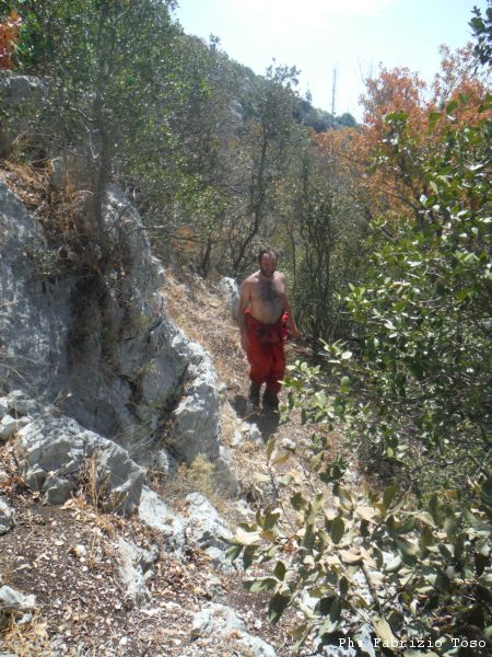 Il sentiero prosegue. Qua la vegetazione e’ meno folta ed il caldo si sente maggiormente.