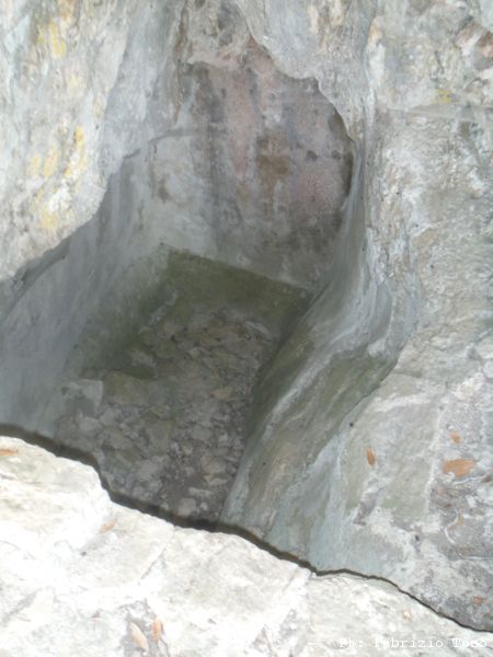La vasca per l’acqua ricavata da uno sgrottamento proprio accanto all’eremo.