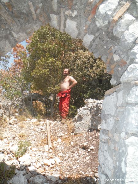Fatto quel che dovevamo, prendiamo la via del ritorno…ecco di nuovo l’emulo di San Sebastiano all’interno dell’eremo.