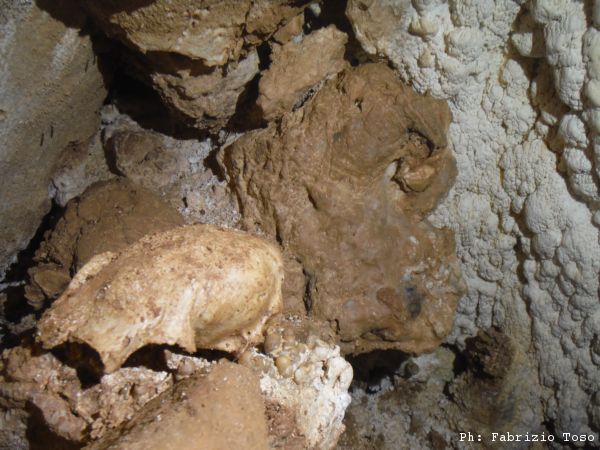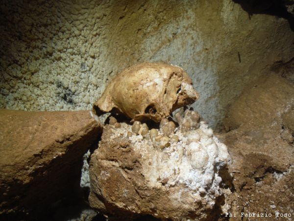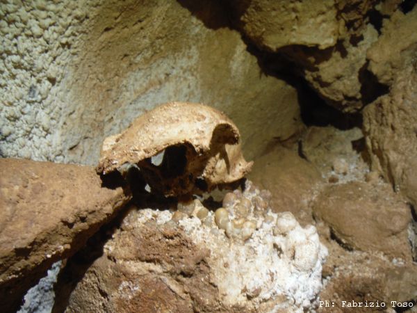 Trovo anche un teschio, non capisco di quale animale ma gli faccio una serie di fotto da tutte le angolazioni, magari qualche “teschiologo” sapra’ dirci qualcosa in merito.