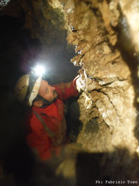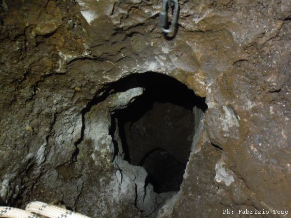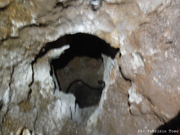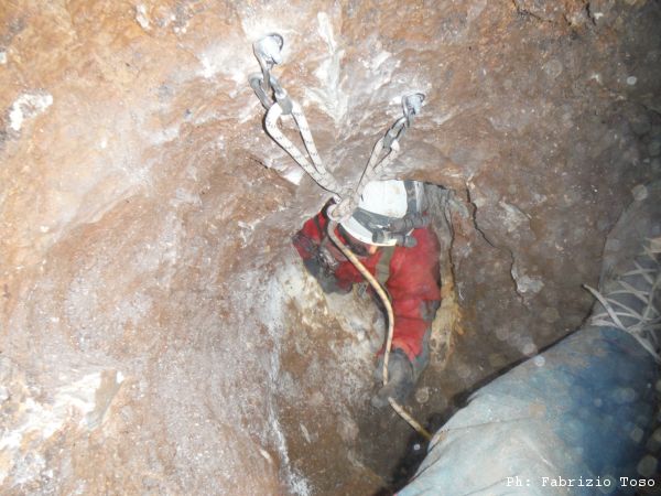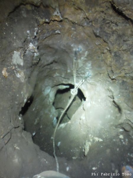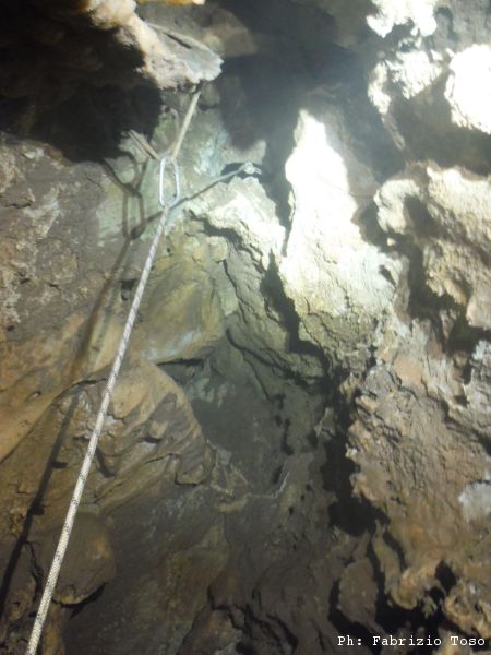 Vado per primo poiche’ Maurizio si offre di disarmare. Strada facendo faccio foto. Questo e’ il primo pozzo armato con il deviatore su naturale.