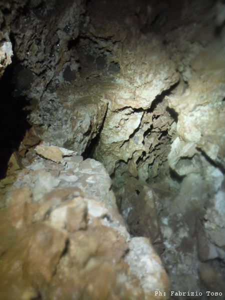 Arrivo all’ennesima saletta, l’aria proviene da una ennesima spaccatura. Nonostante l’entusiasmo devo riconoscere che sono sfinito. Per oggi l’esplorazione termina qua.