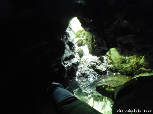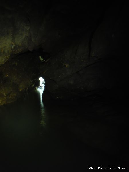 Mi attardo per fare una foto all’uscita, oggi, con l’acqua bassa, c’e’ abbastanza luce per individuare il passaggio.