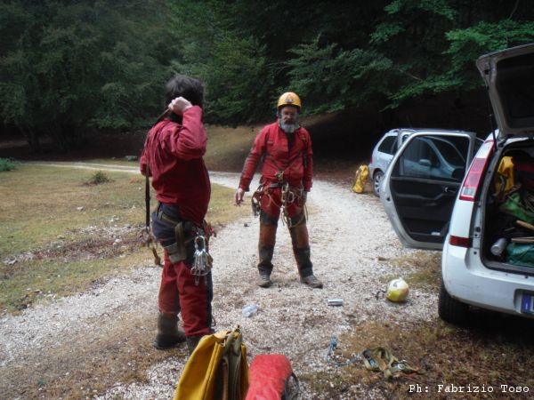 “Valerio, come si chiama ’sta grotta?”; “boh”, “… e che c…., si avvia a superare i meno cento e ancora non gli avete dato un nome!??”, “mi pare Grotta senza nome, o forse Pozzo della Rava Rozza, ah no Pozzo della neve, oppure …”, “vabbe’, ho capito, entriamo che è meglio …”