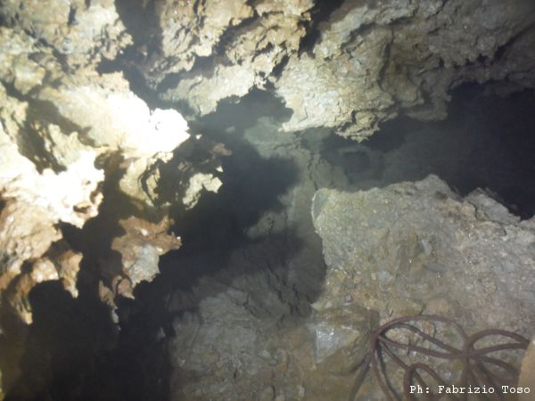 Termino il disarmo del pozzo, aggiorno i miei amici su quanto ho visto e della triste sorte della mia batteria. Informo Giuseppe della perdita definitiva della sua chiave d’armo e poi mi disfo della attrezzatura per riprendere il lavoro di allargamento. Vado a vedere a che punto siamo. Durante la mia assenza Gabriele e Giuseppe hanno lavorato con impegno ed ora il passaggio sembra quasi fattibile, non ci avrei mai sperato quando abbiamo iniziato. Chiedo l’ora, Giuseppe per fortuna ha portato l’orologio. Sono le 5 del pomeriggio. Abbiamo ancora un po’ di tempo.