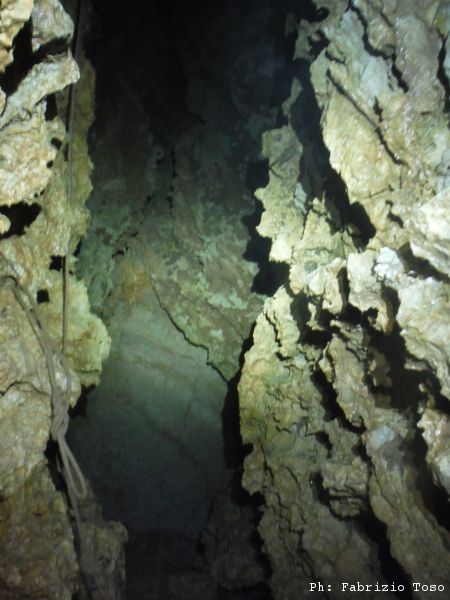 Integro la sua bella relazione con qualche informazione tecnica. I miei amici, oltre a prendere tanta acqua, hanno svolto qualche lavoro utile. E’ stato armato ex-novo l’ultimo pozzo, o meglio, sono stati messi gli attacchi poiche’ la corda l’hanno messa loro e poi giustamente riportata via. A quanto mi hanno raccontato, non e’ stato possibile evitare completamente l’acqua ma spero sia meglio di prima. Finalmente la corda da 100m di Fabrizio e’ stata portata fuori. Ora il pozzo degli Uomini Silenziosi e’ senza corde.
