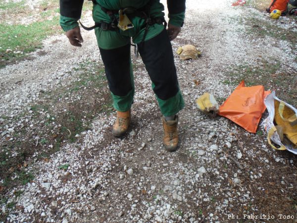 Gabriele ottimizza i tempi, indossa la tuta gia’ infangata dall’ultima volta.