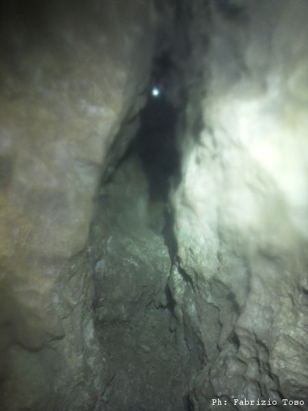Gabriele mi urla che Maurizio e’ arrivato su e che lui si avvia. Tornando indietro fotografo i passaggi appena allargati. Questo e’ l’ultimo.