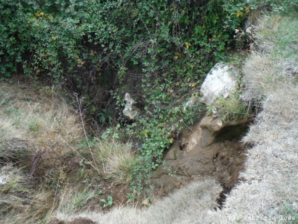 Stamattina Luna era fuori di se’ dalla gioia quando ha capito che sarebbe venuta con noi. E’ montata dietro nella macchina di Gabriele come un fulmine. Una volta preso posto e con esso la sicurezza della partecipazione alla gita odierna, si e’ accomodata sulle gambe di Giuseppe a schiacciare un pisolino. Arrivati alla piana dei Fondi di Jenne parcheggiamo la macchina a bordo strada e ci prepariamo. Appena partiti per la ricognizione, facciamo nemmeno 10 passi che notiamo un simpatico buco. Decidiamo che vale la pena dare una occhiata.