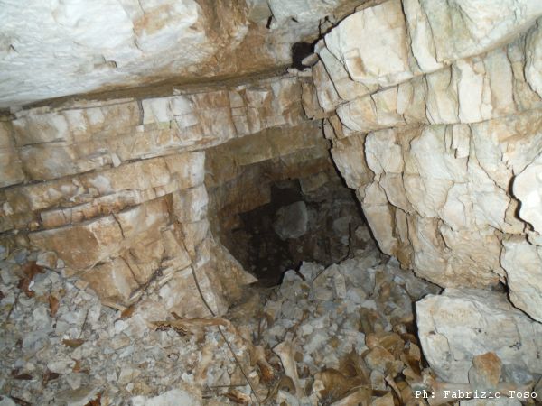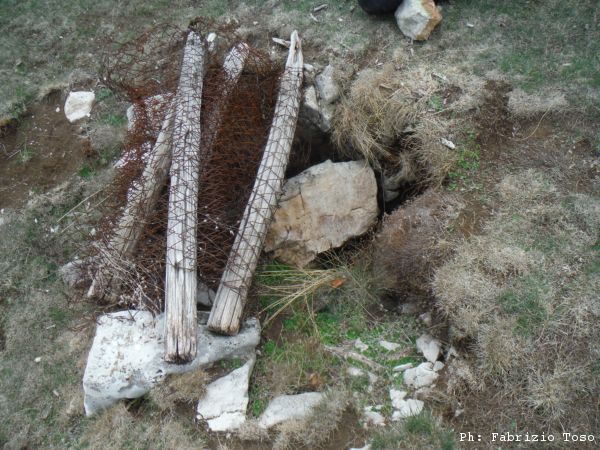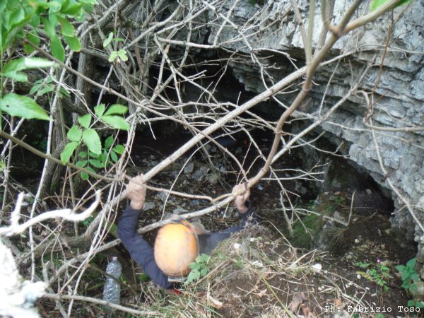 Gabriele si e’ pero’ spostato su un altro dei buchi gia’ conosciuti. Lo raggiungiamo. Il buco e’ protetto dalle filagne e la rete metallica.