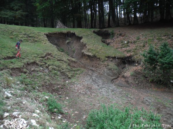 Ecco la dolina. Ci deve essere un accumulo di fango veramente importante, c’e’ poco altro da vedere.