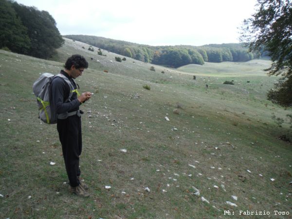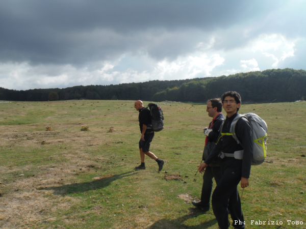Gabriele ci risponde ma non riesce a farci capire in quale punto della piana sia in questo momento. Alla fine ci accordiamo per proseguire grosso modo verso la macchina tutti quanti fino ad incontrarci.
