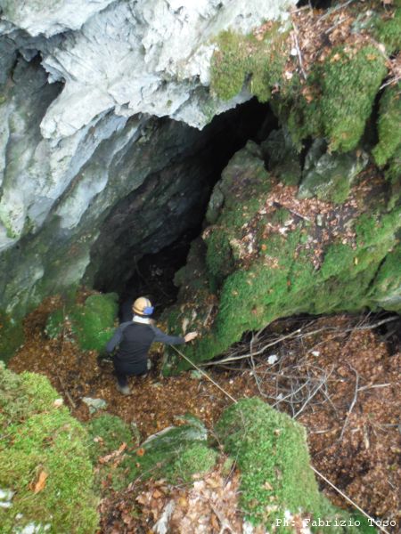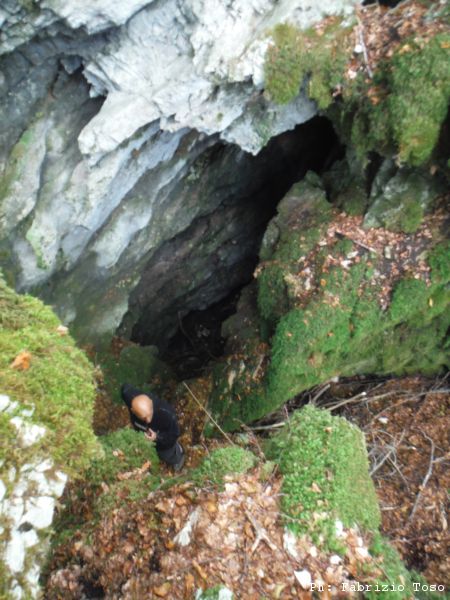 Mentre iniziamo a darci una occhiata vediamo un fosco figuro barbuto sbucare dal bosco di fronte a noi. Il fatto che sia accompagnato da una gentile donzella e che inizino a salutarci con fervore ci fa intuire che si tratta del nostro Maurizio e della sua dolce meta’. Maurizio si unisce a noi mentre procediamo ad osservare il nuovo buco. Ancora una volta e’ Giuseppe che si “intuta”.