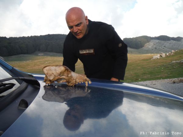 Arrivati alle macchine Nerone studia il teschio che ha riportato come trofeo. A giudicare dai canini potrebbe essere un cane o anche un lupo.