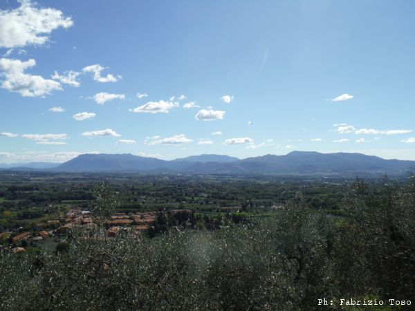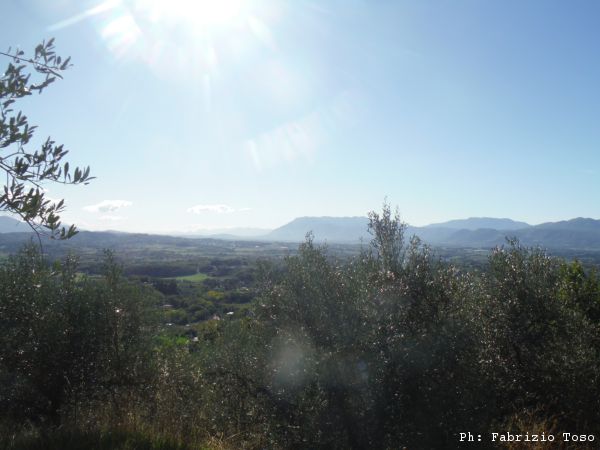 Maria e’ impegnata in una telefonata, la lasciamo parlare, non c’e’ fretta. Ammirando il panorama mi faccio spiegare da Gianni quali siano le montagne che ci circondano. Scopro cosi’ che di fronte a noi abbiamo i monti Lepini, col Semprevisa, Carpineto Romano e cosi’ via.