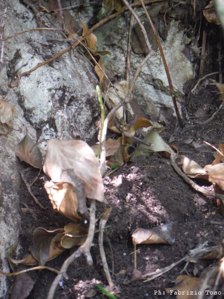 Maria dietro di noi si occupa di depositare terra, foglie e sassi in una zona dove non dia fastidio.