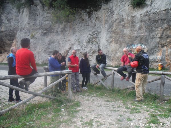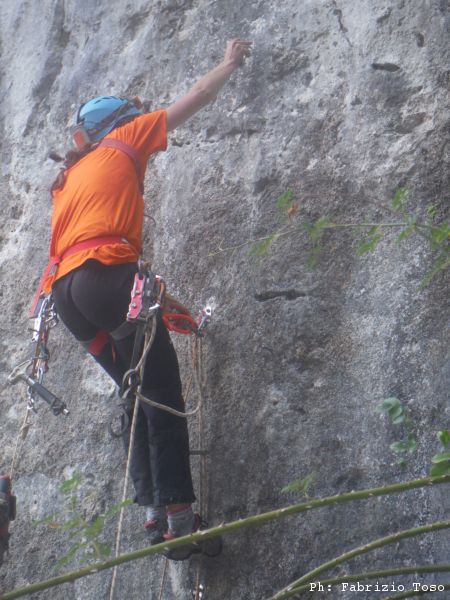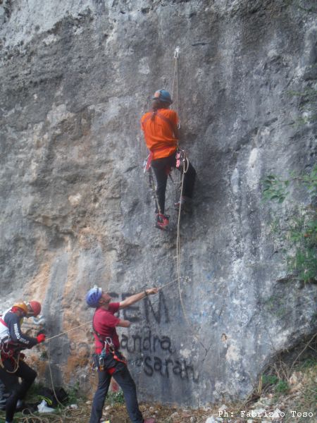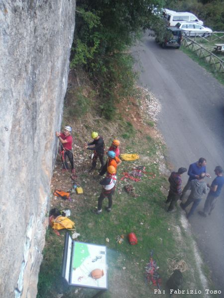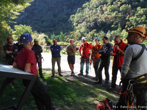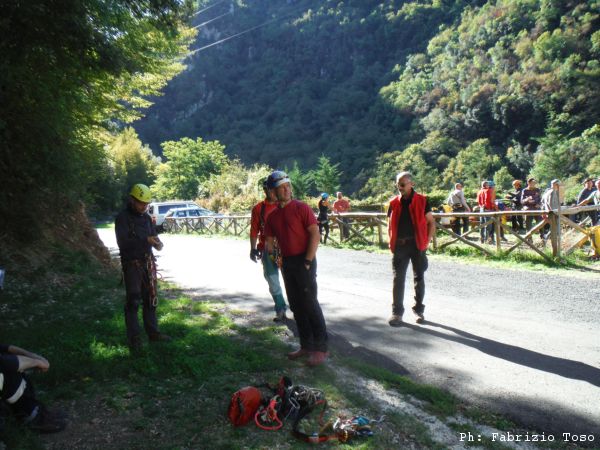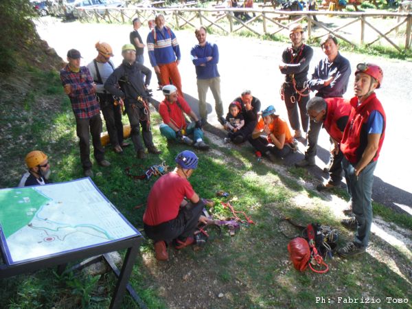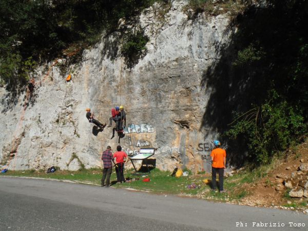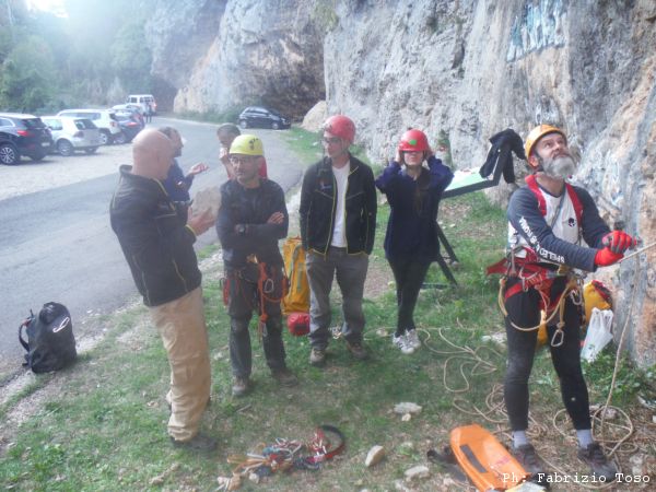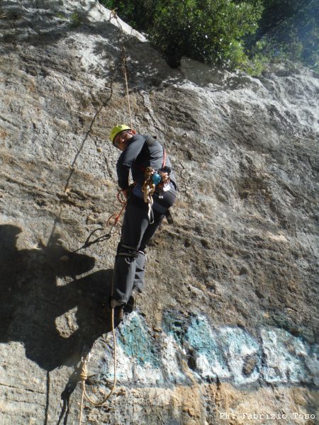 Nel frattempo alla parete per la risalita, dopo lo spiegone di Massimiliano, si avvicendano vari risalitori. Ora e’ il momento di Maurizio.