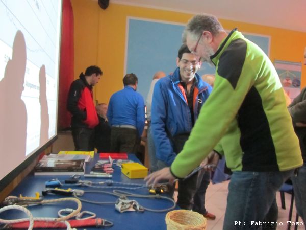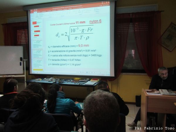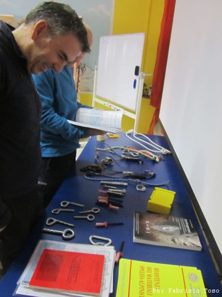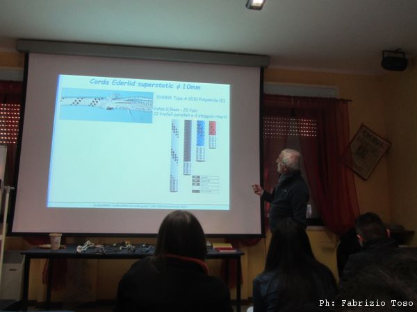 Cosa si racconta di un corso materiali? In fondo in fondo siamo stati 3 giorni ad ascoltare di come si rompono corde ed attrezzature…Andare nei particolari sarebbe come ripetere il corso, come prima cosa non me ne ricordo abbastanza, secondo vi annoierei! Facciamo cosi’, vi mostro le foto fatte, se mi capita di ricordare qualche fatto notevole o simpatico, ve ne scrivo!