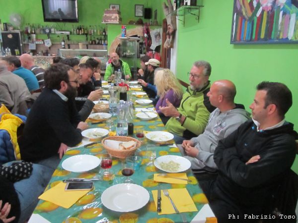 Cena. Alessandro, gestisce magistralmente l’ostello del Volo che ci ospita.
