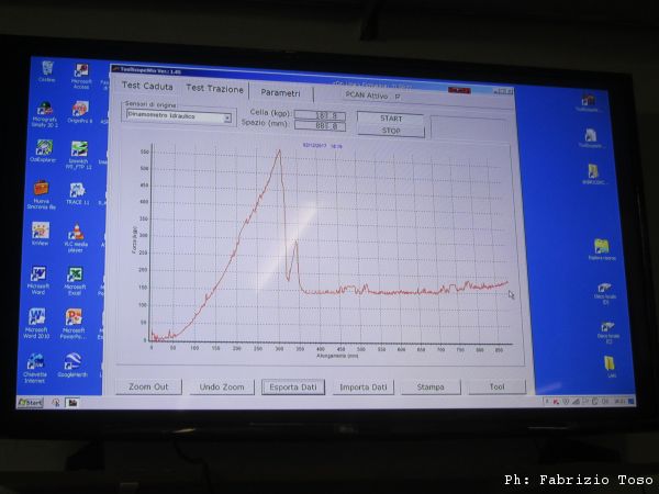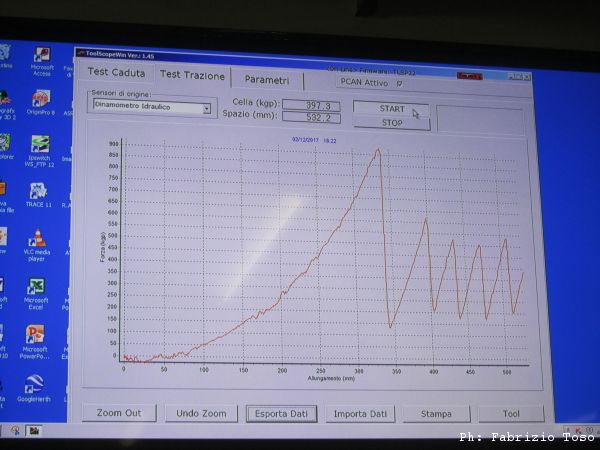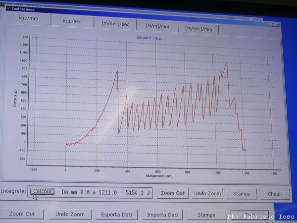 Il grafico finale, il tracollo in fondo mostra il momento in cui anche l’ultimo trefolo ha ceduto.
