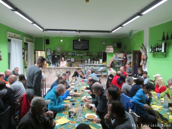 Il pasto buono e rumorosamente allegro. Dopo cena, tra un digestivo e l’altro Nico ci racconta delle sue avventure speleologiche di quando era un aitante speleo ventenne. E’ bravo e divertente nel raccontare, lo ascolto volentieri per parecchio tempo ma poi la stanchezza arriva tutta assieme. Devo proprio salutare tutti ed andare a dormire.