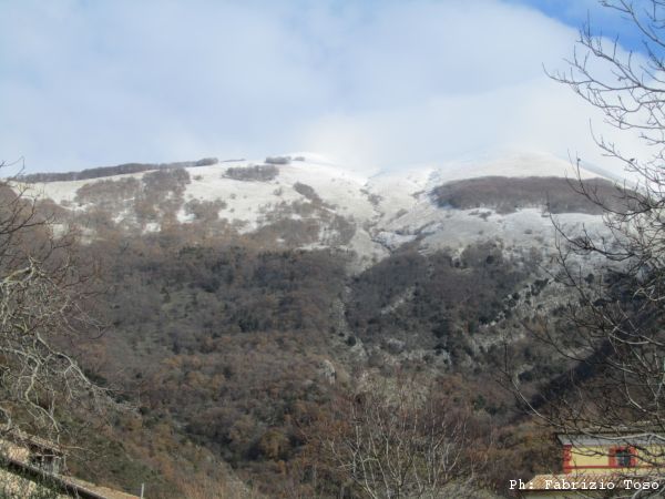 Il tempo non e’ dei migliori, Monte Cucco e’ completamente coperto da nubi. Tira un vento teso e ghiacciato, Luna si spaventa per gli alberi che si muovono e quindi posso rientrare quasi subito senza prendere troppo freddo.