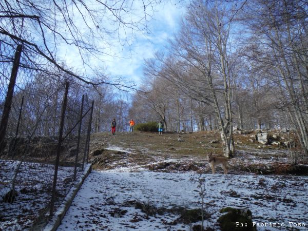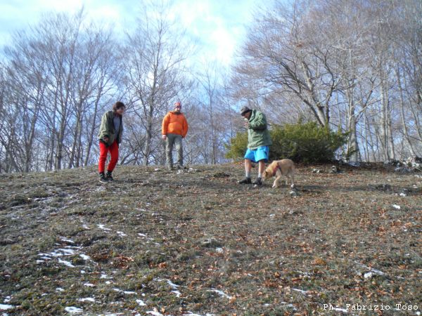 Stavolta siamo solo Gabriele, Io e Luna. Dopo il solito appuntamento dall’orario “lasco” e la sosta al bar “Cicchetti” per un aggiunta di colazione, ci dirigiamo per la piana di Fondi di Jenne sperando che le strade siano sgombre dalla neve. In effetti il nostro desiderio e’ esaudito in maniera impeccabile fino a Monte Livata, dopo un poco meno, ma ad ogni modo riusciamo ad arrivare. Una volta parcheggiata la macchina, siamo gia’ pronti per partire. Appena nel bosco slego Luna perche’ sia libera di correre e divertirsi. All’ingresso di Piccola Creta ci prepariamo al facile lavoro che ci siamo prefissi, fare la poligonale fino alla Creta Rossa.
