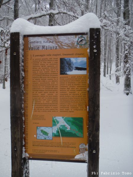 Un cartello mi insegna che siamo a Valle Maiura, lo fotografo con l’intenzione di leggerlo in seguito (e’ ancora una intenzione!).