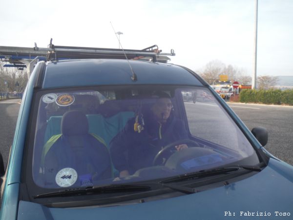 Eccolo con la sua inseparabile, quanto puzzolente, pipa. E’ da solo, quindi mi trasferisco nella sua macchina abbandonando Gabriele e Daniele.