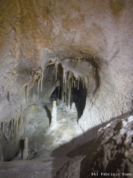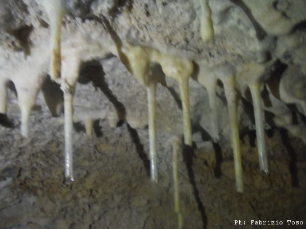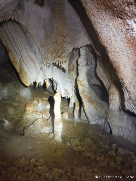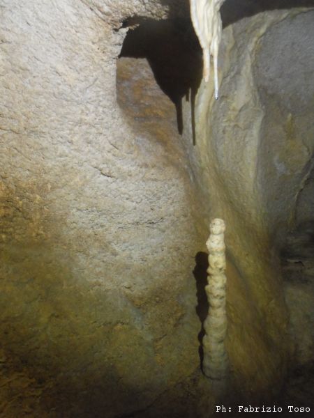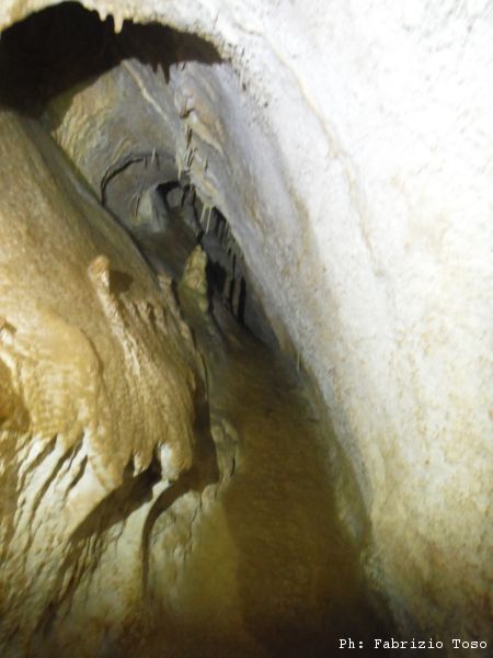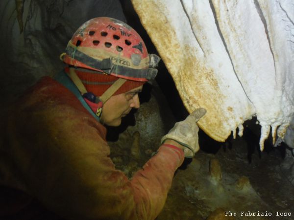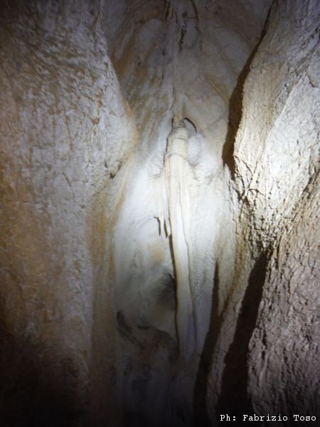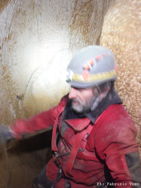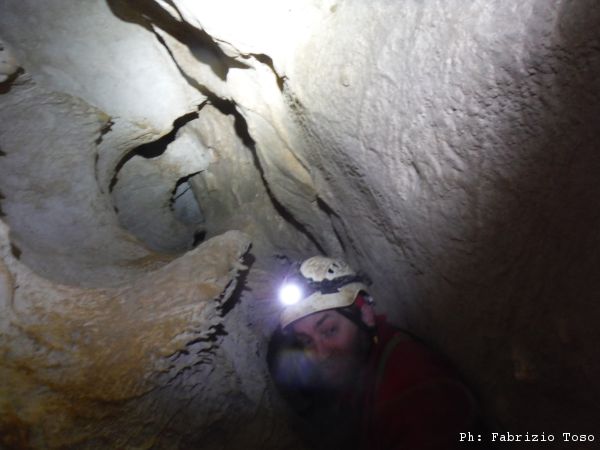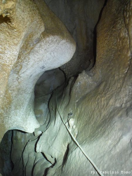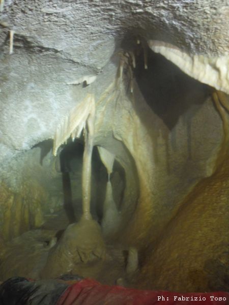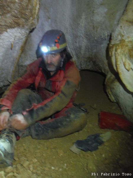 Gabriele si e’ vestito troppo pesante per questa grotta. E’ da quando siamo entrati che suda copiosamente ed ora inizia a risentirne.