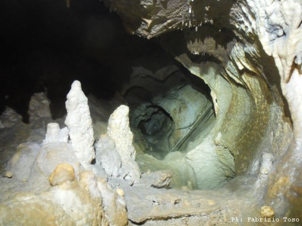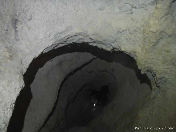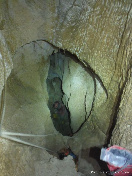 Appena appena preoccupato e sinceramente stupito della possibilita’ di questa grotta di far sparire interi gruppi di persone, me ne esco per sincerarmi che nel frattempo i miei amici non siano arrivati fuori. Arrivo fino alle macchine ma trovo solo Gabriele. Ci penso qualche secondo poi decido di rientrare. Mi dirigo di nuovo verso il pozzetto perche’ mi sembra di sentire rumori. Sorpresa! ecco Giuseppe che spunta dal pozzetto.