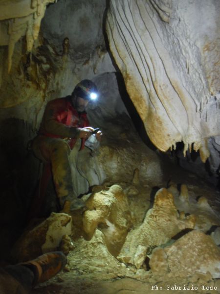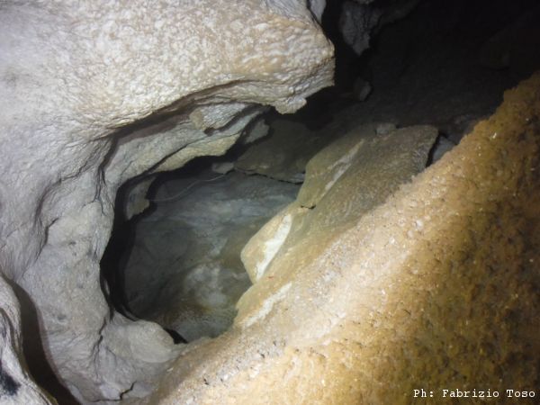 Dico a Gabriele: “Saranno sicuramente avanti, diretti alla sala del the. Visto che oramai il mio proposito di fare rilievo e’ saltato, approfitto per curiosare in giro”. Gabriele si ferma a riprendere fiato mentre io passo il toboga continuando orizzontalmente per alcuni ambienti dove solitamente non si passa.