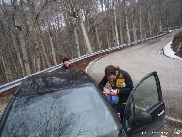 Ultimi preparativi. Gabriele dice che rimarra’ fuori. La mia guida sulle curve per Monte Livata gli ha causato mal di stomaco.