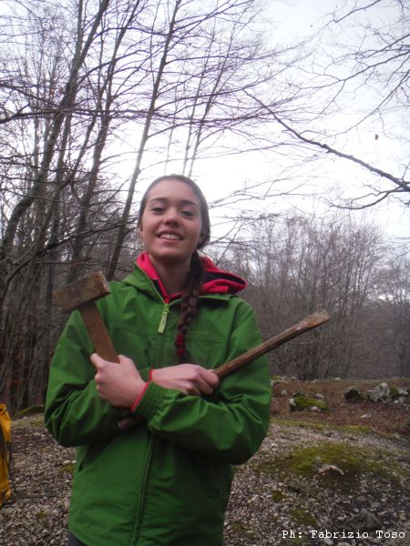 Irene con cappuccio, mazzetta e scalpello e’ vagamente inquietante, ma tranquilli li usa solo per scavare, non per finire speleologi in difficolta’.