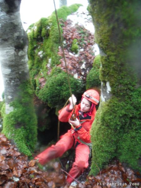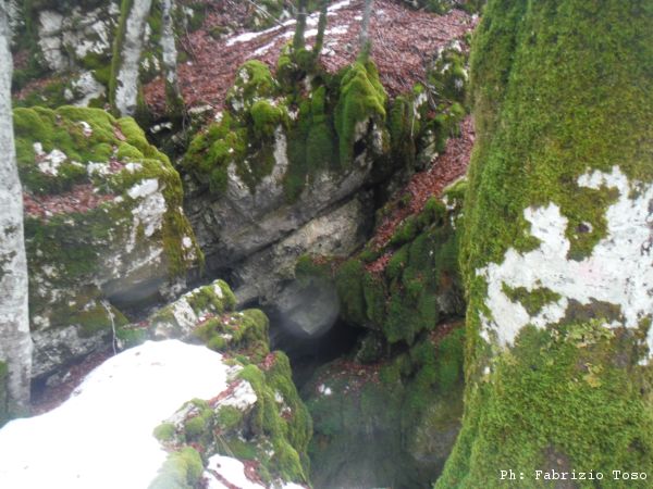 Eccoci al bucone detto Pozzo della neve. Irene va subito a curiosare in un buchetto laterale.