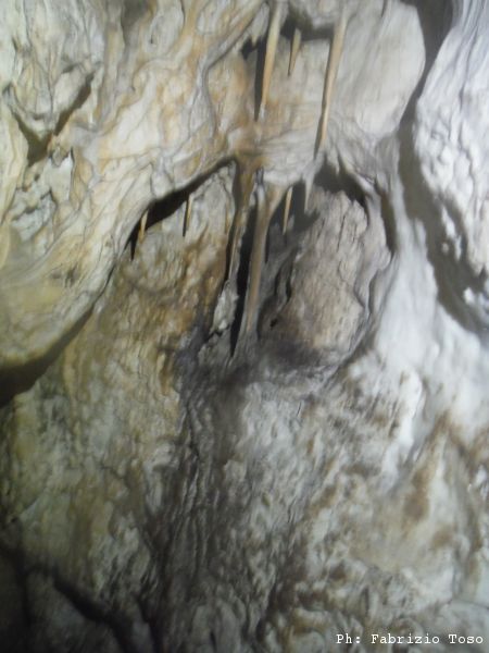 Quando siamo tutti bardati a dovere, partiamo alla volta della grotta. Una breve sosta alla “cretina” per un saluto e poi proseguiamo.