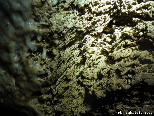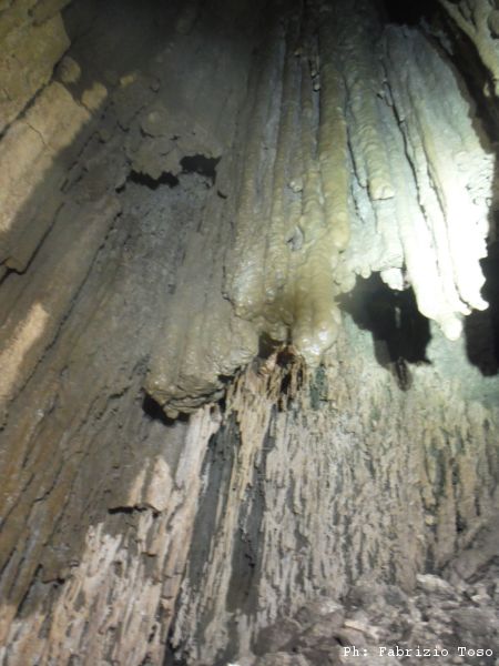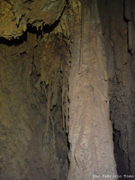 Ancora la strana roccia che forma le pareti di questa grotta, sembrano filamenti fossili di chissa’ quale vegetale.