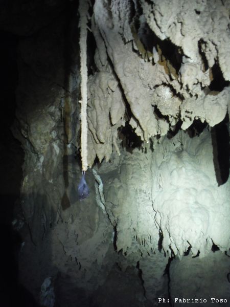 Continuando il rilievo quasi mi scontro con un pipistrello, non me ne ero proprio accorto. Faccio svelto quel che devo e mi allontano.