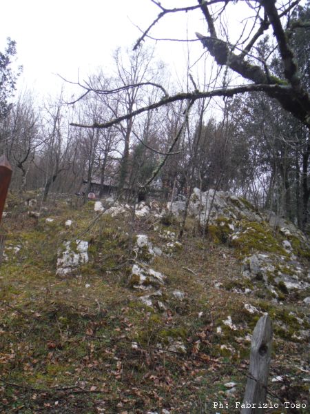 La recinzione ora l’abbiamo alla nostra destra. E proprio a destra, oltre la recinzione, sembra esserci un punto interessante. Salendo troviamo un punto per scavalcarla di nuovo. Ci sono piu’ punti buoni dove cercare la nostra grotta. C’e’ una grossa dolina, molto interessante, mi avvicino per valutarla. In quel mentre sento Vincenzone affermare che l’Alberta diceva che la grotta si apre a ridosso di una “roccetta”. Mi dirigo senza ulteriori indagini verso la piccola parete dove Vincenzina ha individuato un paio di buchi. Leandro e Luca hanno la mia stessa idea.